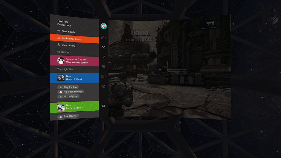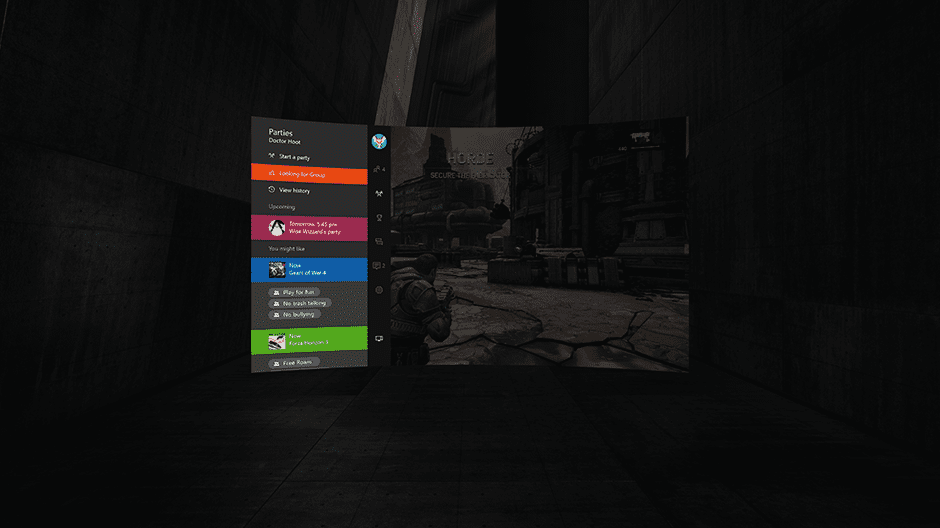 At this time the VR capabilities for current titles unfortunately won’t recreate the actual game settings into a virtual environment due to the fact that the currently available titles were not developed as VR games. However this partnership between Xbox and Oculus does give developers the opportunity to expand into full VR creation for possible future titles that we may see. What the Oculus Rift will be providing up front is in fact a new environment from which to get your game on.